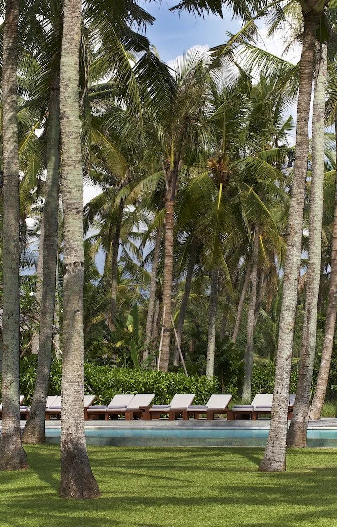 The front pool at Konaditya House is a highlight of the estate, featuring a 25-meter infinity pool that merges effortlessly with the Indian Ocean horizon. Surrounded by meticulously landscaped gardens and expansive lawns, this outdoor oasis offers multiple lounging areas and private balés for enjoying the stunning sunsets. The pool area is perfect for both relaxation and entertainment, providing a serene setting for swimming, sunbathing, or simply soaking in the natural beauty of Bali.
