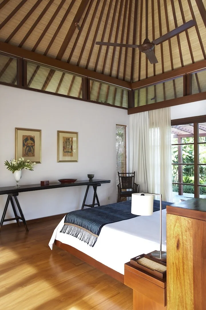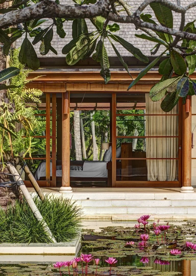 The architectural brilliance of Konaditya House is evident in its harmonious layout spread across several hectares. Central to the estate is a magnificent lotus pond, surrounded by spacious bedrooms and airy living areas that encourage natural light and ventilation. The fluid design seamlessly integrates indoor and outdoor spaces, creating an environment of tranquility and beauty. Each building reflects an authentic Asian aesthetic, meticulously crafted to complement the lush natural surroundings.